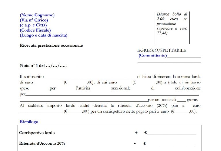 Come compilare la ricevuta di prestazione occasionale