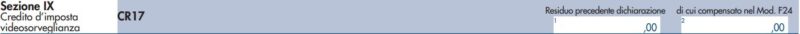 Compila il Rigo CR17 indicando l’importo del credito d’imposta relativo alle spese sostenute per l’installazione di sistemi di videosorveglianza digitale o allarmi per la prevenzione di attività criminali.
